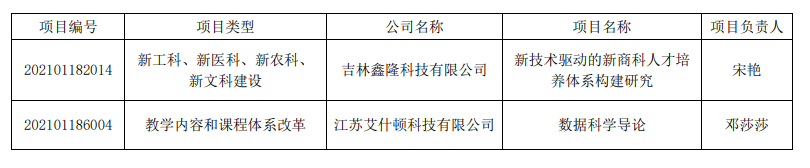 宋艳教授申报的《新技术驱动的新商科人才培养体系构建研究》项目,拟以人才培养体系构建为抓手,与合作企业建立更密切的互动,在人才培养方案制定校企双师型教师队伍建设联合打造技术驱动的管理类金课、企业管理价值提升,组织召开专家论证会、经验交流会等方面进行探索尝试。该项目由宋艳教授领衔,校人工智能数据工程中心梁刚健副研究员以及我院信息管理与决策科学系王欣副教授、王芳讲师加入项目组。