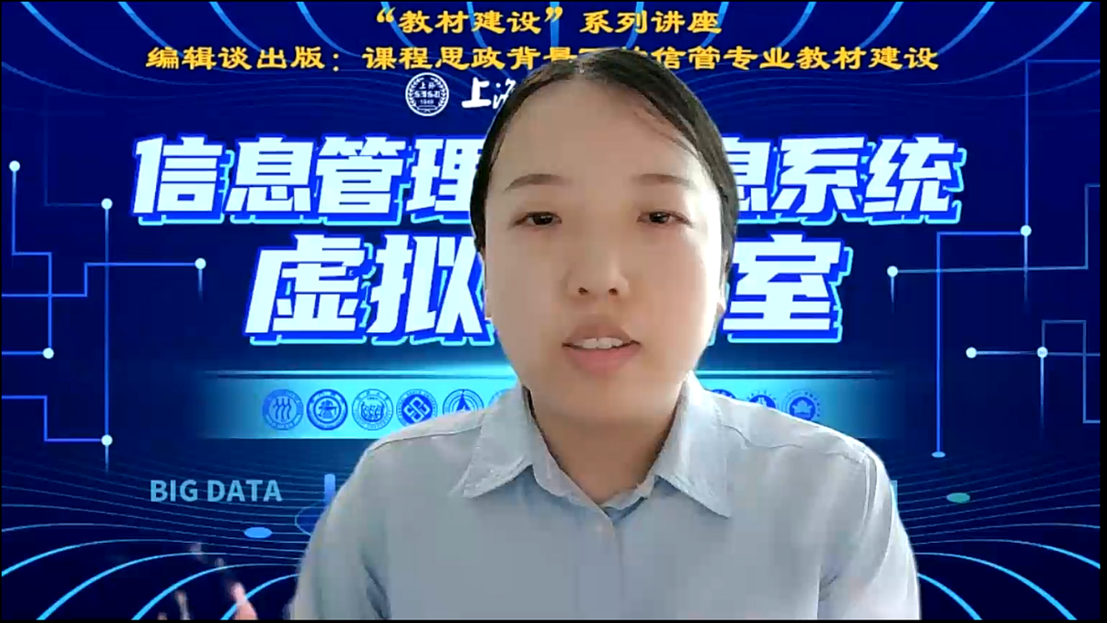 讲座伊始,主持人张明月副教授对机械工业出版社华章分社的张有利编辑进行了介绍,也非常感谢张有利编辑能够受邀从出版社编辑的视角来为信管专业的老师们介绍教材建设和出版的流程、注意事项及经验教训,特别是在课程思政的背景下如何在教材建设、课程建设之中润物细无声地融入课程思政元素,也是偏技术类的信管专业教材和课程大家重点关注的焦点。