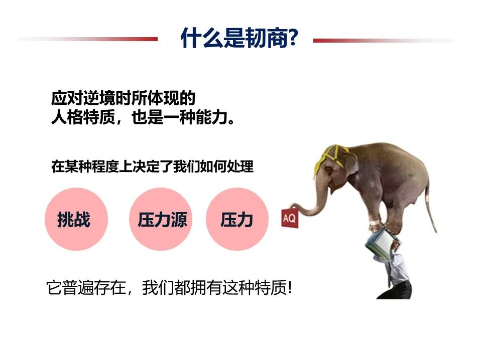 关于韧商的定义,李福学老师聚焦掌控、承诺、挑战、自信等关键内容,韧商即应对逆境时所体现的人格特质,也是一种能力。他强调韧商是一种普遍存在,每个人都拥有这种特质和能力,只是程度不同而已。