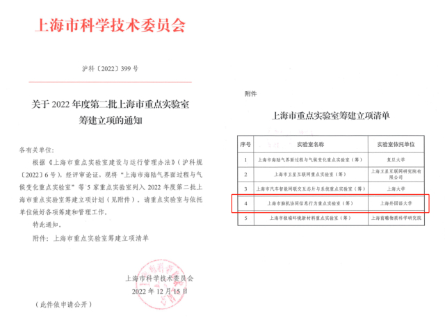 2022年12月底,我校成功获批 “上海市脑机协同信息行为重点实验室(Shanghai Key Laboratory of Brain-Machine Intelligence for Information Behavior, BMIB)”,是外语类高校首个科技类省部级重点实验室。实验室围绕智能技术变革带来的管理领域信息行为新问题、新挑战,采用脑科学与人工智能协同的方法开展信息行为研究,面向国家战略需求,解决卡脖子难点问题,服务经济主战场,助力中国式现代化建设。