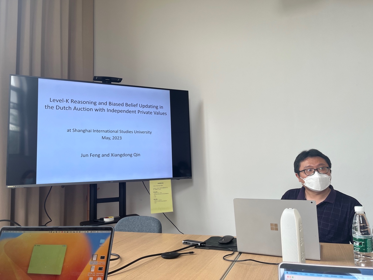 5月19日,我院举办了“管院讲坛”系列学术讲座第99期。应我院邀请,合肥工业大学经济学院冯骏副教授为我院做了题为“Level-K Reasoning and Biased Belief Updating in the Dutch Auction with Independent Private Values”的精彩讲座。傅仕光主持了此次讲座,学院数十名教授、教师、博士生、研究生及本科生参加了此次讲座。