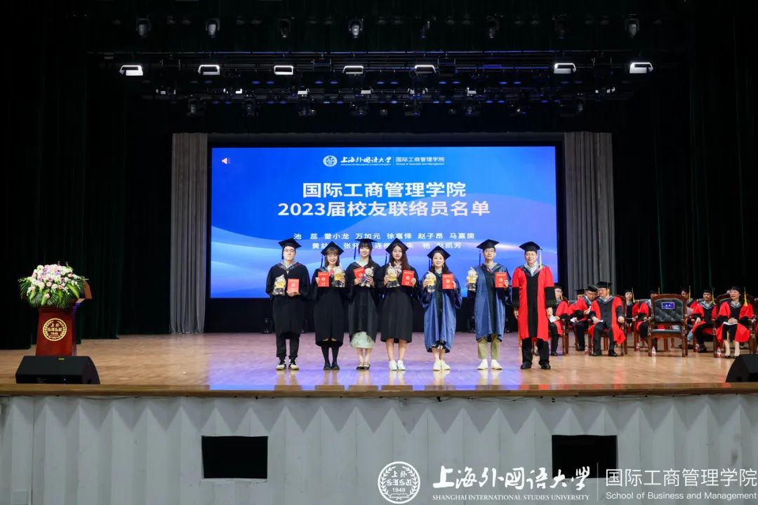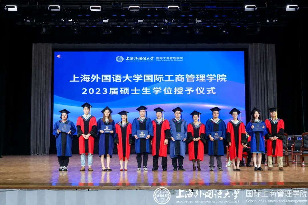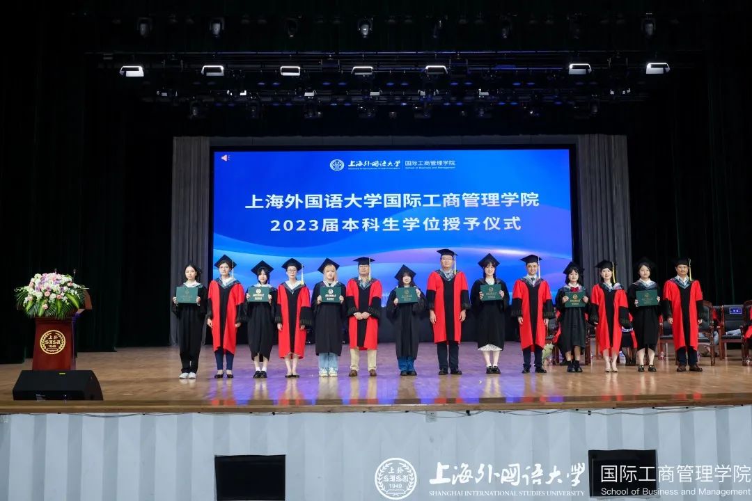 6月20日下午,上海外国语大学国际工商管理学院以“薪火相传、携手同行”为主题的2023年毕业典礼暨学位授予仪式于松江校区教育会堂举行。院长潘煜,学术委员会名誉主席范徵,党委书记徐永,副书记汪丽,副院长马宝君,副院长杨晓兰,学术委员会主席王风华, 2005届工商管理专业本科校友、宝尊集团财务VP祝燕洁,学院系主任、导师及辅导员,2023届全体毕业生及学生家长出席本次典礼。典礼由党委副书记汪丽主持。