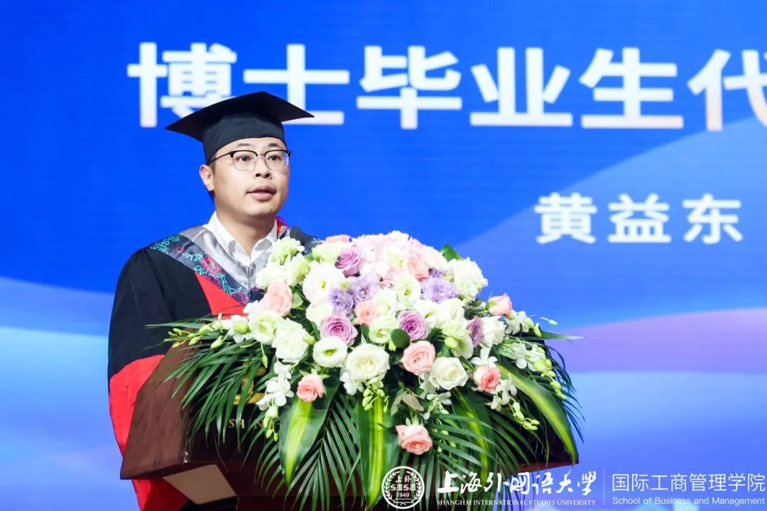 春风化雨、润物无声,学院院长潘煜以“满树的花朵,只源于冰雪中的一粒种子”为主题发表致辞。他总结了学院筚路蓝缕的艰苦创业史,在学院师生们薪火相传、赓续奋斗的改革与开拓下,管院发展的种子茁壮成长并开花结果,获得诸多高水平科研成果,为国家战略与上海经济建设贡献上外力量。同时,他也代表学院向全体毕业生提出三点希望:一是相信信念的力量,它指引了我们未来人生的航向;二是永葆直面未来的勇气,这是我们前行路上克服困难、走出困境的力量来源;三是请用毅力铺就追梦之路,坚忍不拔、意志刚强,一路的坚持能够支撑我们看到信念之花盛放的那一天。