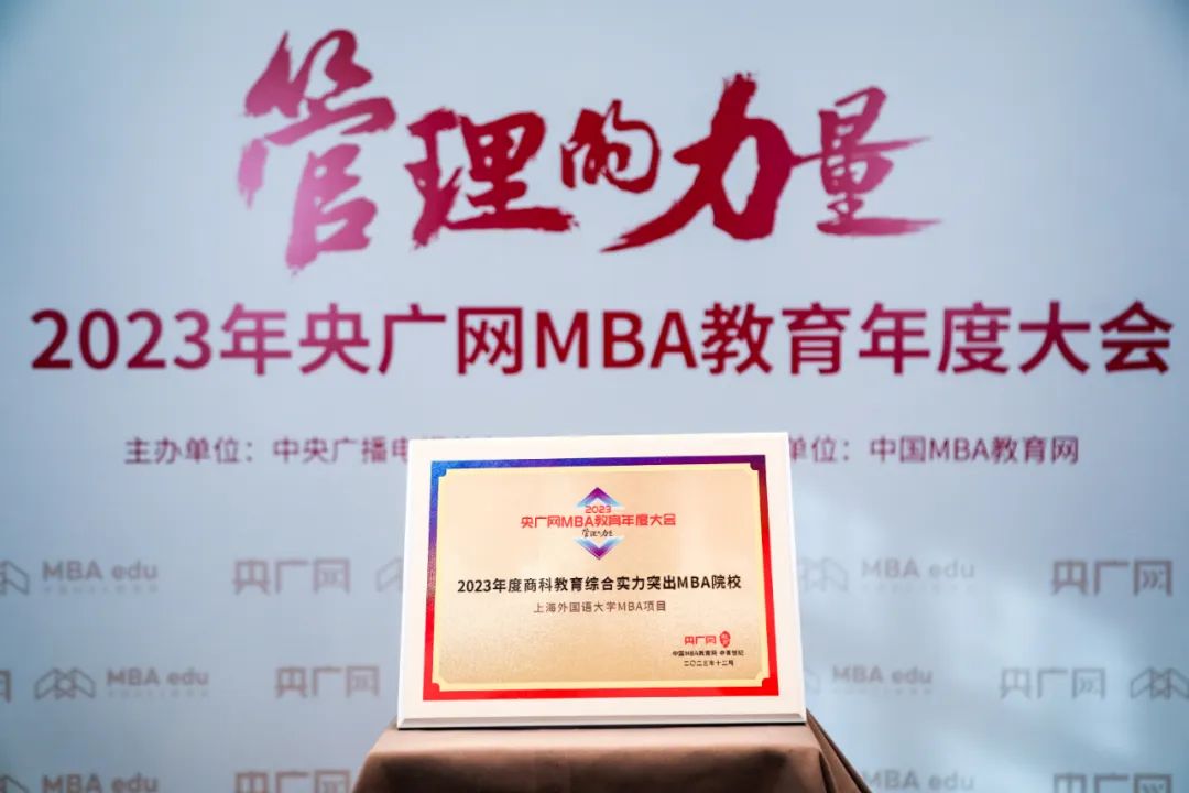 为激励坚守MBA教育初心、持续变革创新、打造行业影响力的商科教育优秀头部力量,大会颁布了多个荣誉奖项。上海外国语大学MBA项目多年来在商科领域深耕细作,以加强商科教育建设为已任,秉承育人为本教育理念,不断创新前沿变革,以数智时代新思考、新作为为社会建设贡献力量,获评“2023年度商科教育综合实力突出MBA”。
