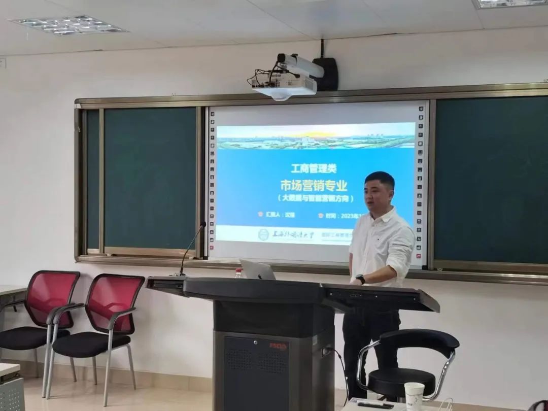 我院营销科学系主任沈强教授也紧接着介绍了市场营销专业的建设情况。