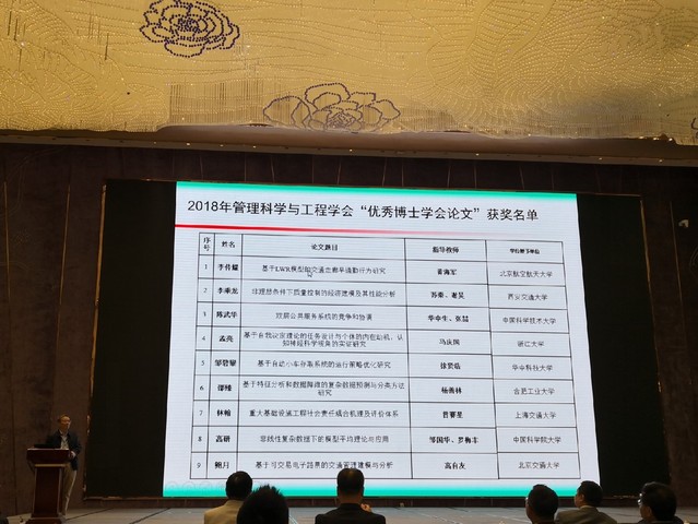 图2 2018年管理科学与工程学会“优秀博士学位论文”获奖名单