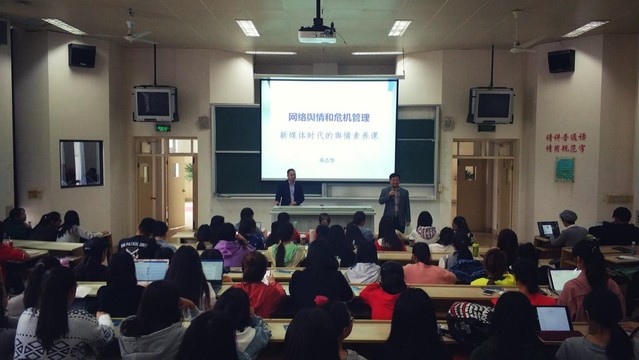 本次讲座原计划安排在容量80人的公关实验室举行,因为前来听讲座的学生太多,而临时改到容量150人的大教室进行,依然座无虚席,反映出广大学生对这一内容讲座的较大兴趣。