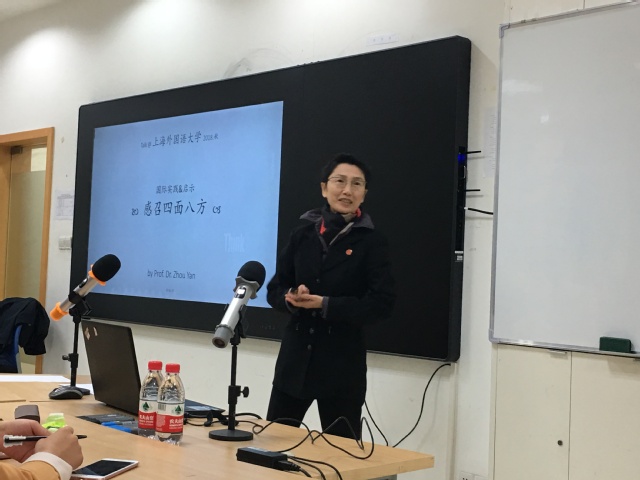 10月31日晚,全球领军跨国企业资深国际高管,北京大学光华管理学院管理实践教授Dr. Zhou Yan在上外虹口校区1号楼108教室为MBA学子们分享了一场题为“感召四面八方---国际实践与启示”的精彩讲座。讲座同时吸引了来自高翻和国关等学院的同学们前来聆听。
