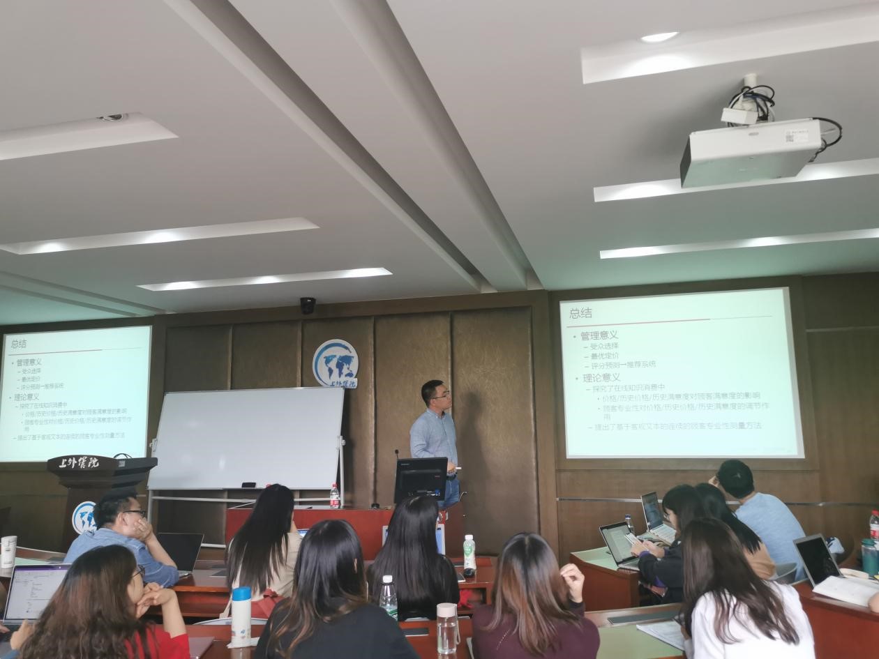 10月25日,应我院邀请,中国人民大学商学院张瑾副教授在上外松江校区2220教室为我院师生分享了题为“从免费到付费:知识支付平台上的客户专长和客户满意度”的精彩讲座。学院部分教师、研究生及本科生生均参加了此次讲座。